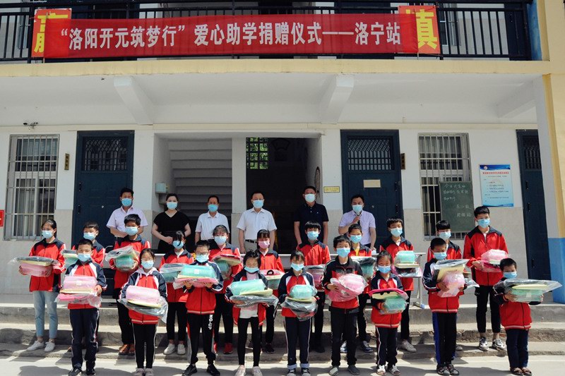 2020年5月27-29日,“洛陽開元筑夢行”愛心捐助活動分別在欒川秋扒鄉(xiāng)中心小學(xué)、洛寧故縣中心學(xué)校、宜陽蓮莊鎮(zhèn)政府舉行,共資助了61名貧困學(xué)生,累計捐款捐物近4萬元;